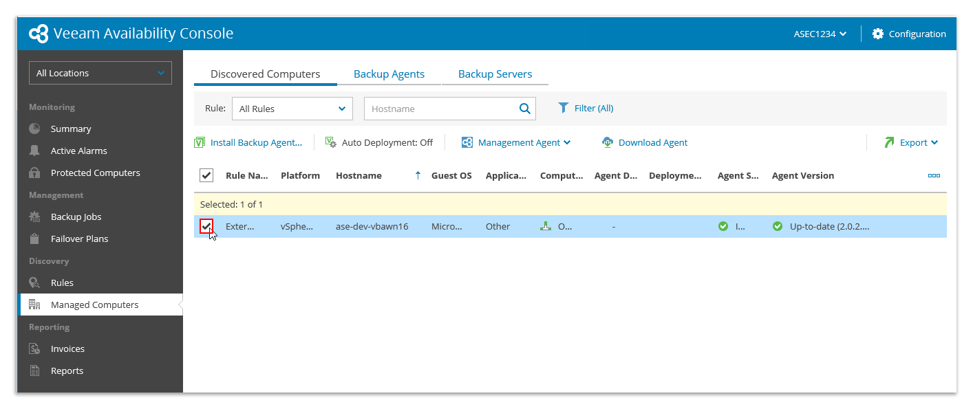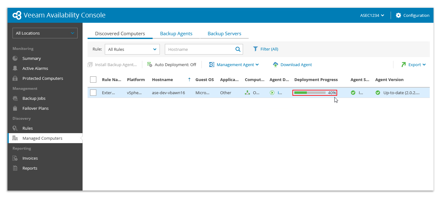 You can monitor the Deployment Progress of the Backup Agent from Managed Computers > Discovered Computers
