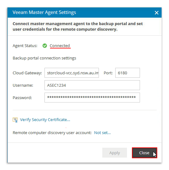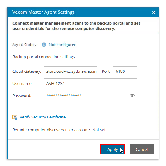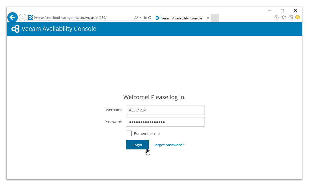 Step One: On the server or workstaion you wish to backup, login to the Veeam Availability Console (https://storcloud-vac.syd.nsw.au.imase.io:1280) with the credentials provided via Email.