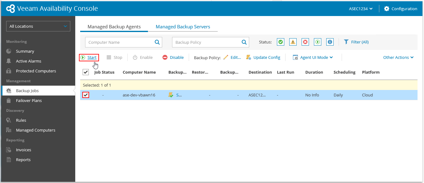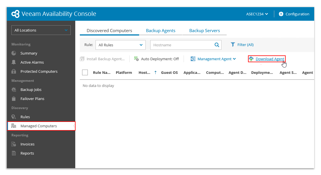 You can monitor the Deployment Progress of the Backup Agent from Managed Computers > Discovered Computers