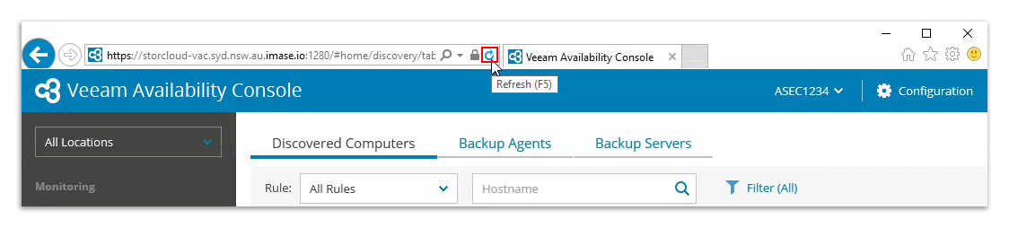 Step 11: Return to the Veeam Availability Center and Refresh the page.