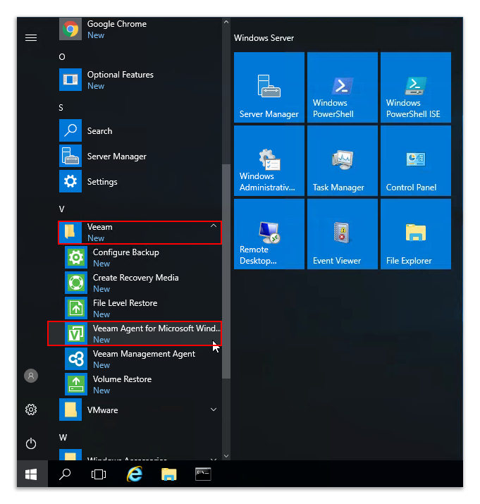 Step Two: Expand Veeam, then select Veeam Agent for Microsoft Windows