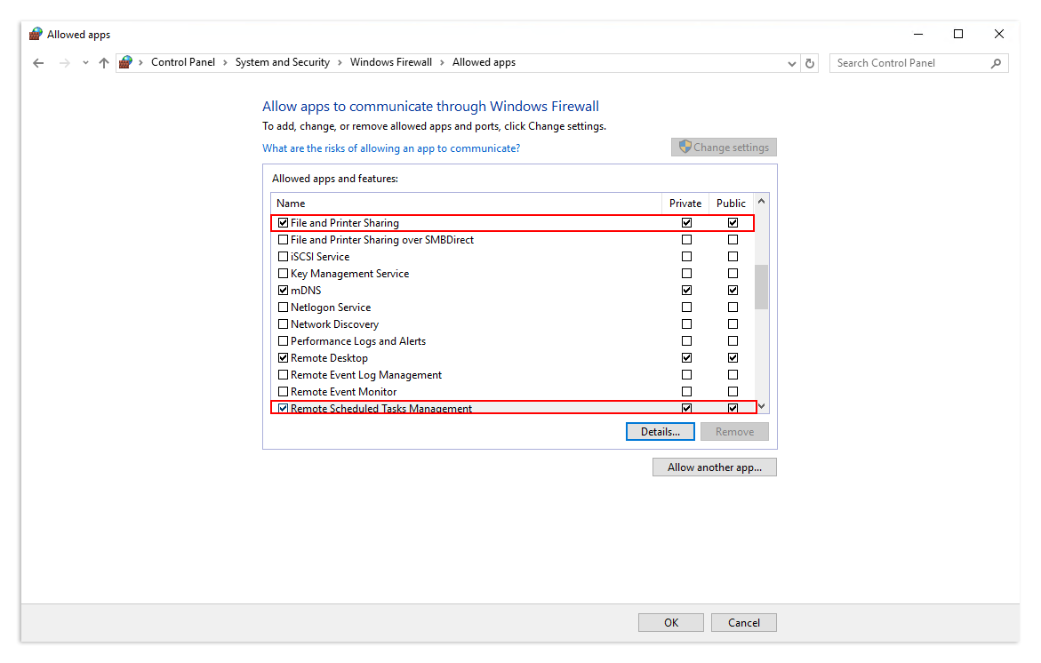 The File and Printer Sharing and Remote Scheduled Tasks Management (RPC) firewall rules must be open on the computer you intend to backup.