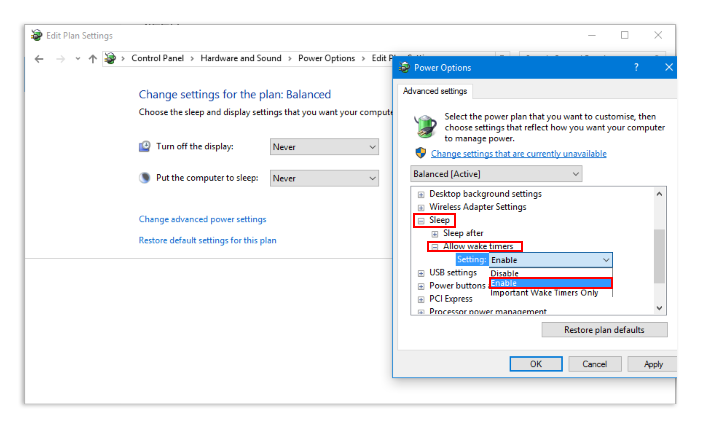 Before you proceed, ensure the computer you will be backing up has wake timers enabled